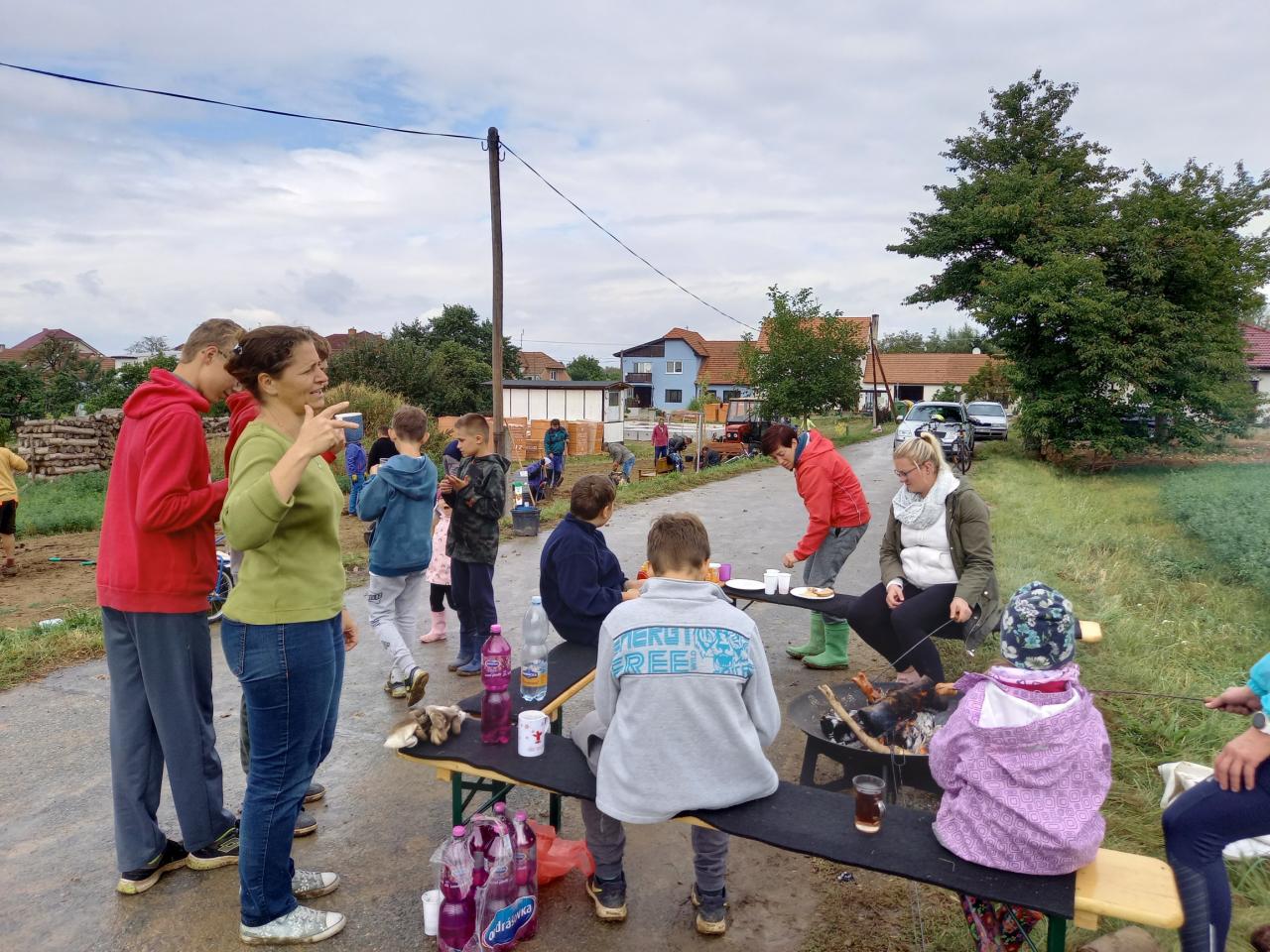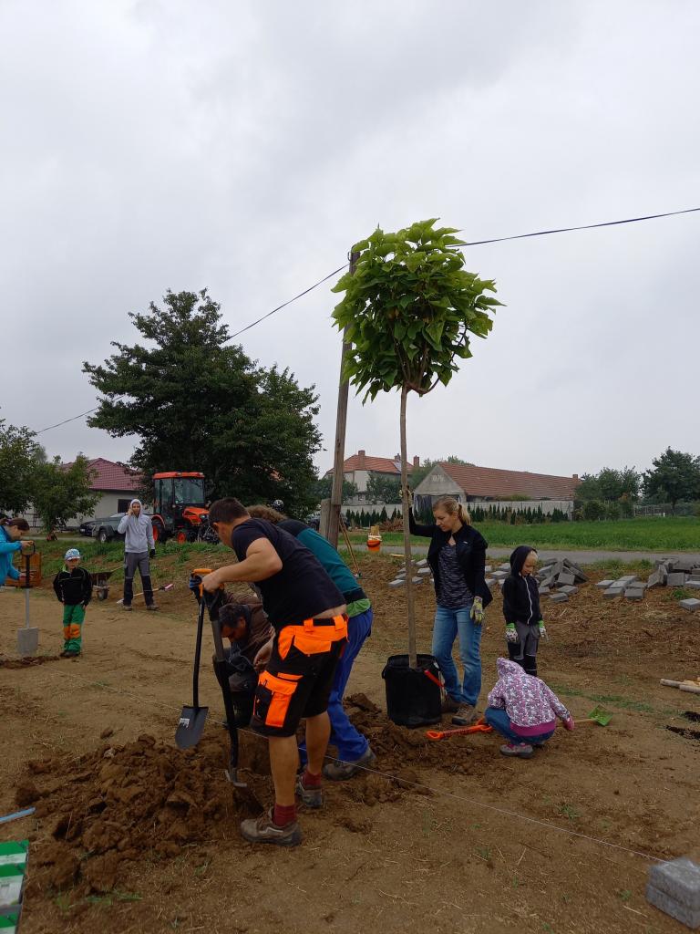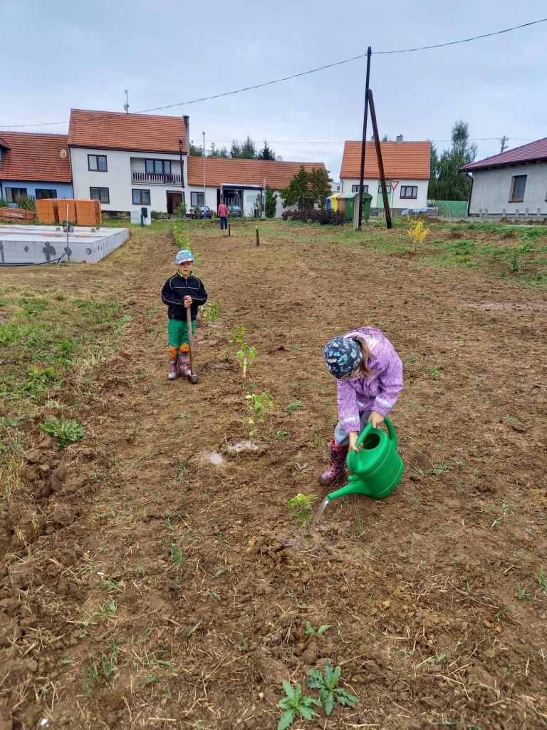 Zahrada na Větrově - v sobotu 18.9.2021 se podařilo, na pozemcích vedle cesty do družstva, vysázet několik ovocných stromů - švěstky, třešně, meruňky. Taky se vysazeli borůvky, muchovník, lískové oříšky a větší množství ibišku na okrasu. Zasázeli se i dva velké stromy - katalpa a javor, pod kterými se budeme moci schovat před sluníčkem. Na svolanou brigádu došly děti i s rodiči. Takže šla práce pěkne od ruky. Podařilo se rozmístit i venkovní Člověče nezlob se, diskgolfový koš a kuželky. Kuželky jsou na obě hry v uložném prostoru lavičky, takže, kdo bude mít chuť, nemusí si nic nosit sebou. Snad je každý, kdo si přijde zahrát, uklidí zpět na místo. Tráva, kterou jsme tam před časem zaseli, zatím nevzešla, ale snad se nám brzo plocha zazelená. V nové zahradě nechybí ani lavičky k posezení. Počasí nám moc nepřálo, chvilku nám docela dost pršelo, ale ani to brigádníky neodradilo od práce. Na ukončenou jsme si opekli špekáčky , na zahřátí byl i čaj. Moc děkuji všem, kteří se brigády zúčastnili, pomohli s dovozem vody a veškeré materiálu. Dana Jarolímová.