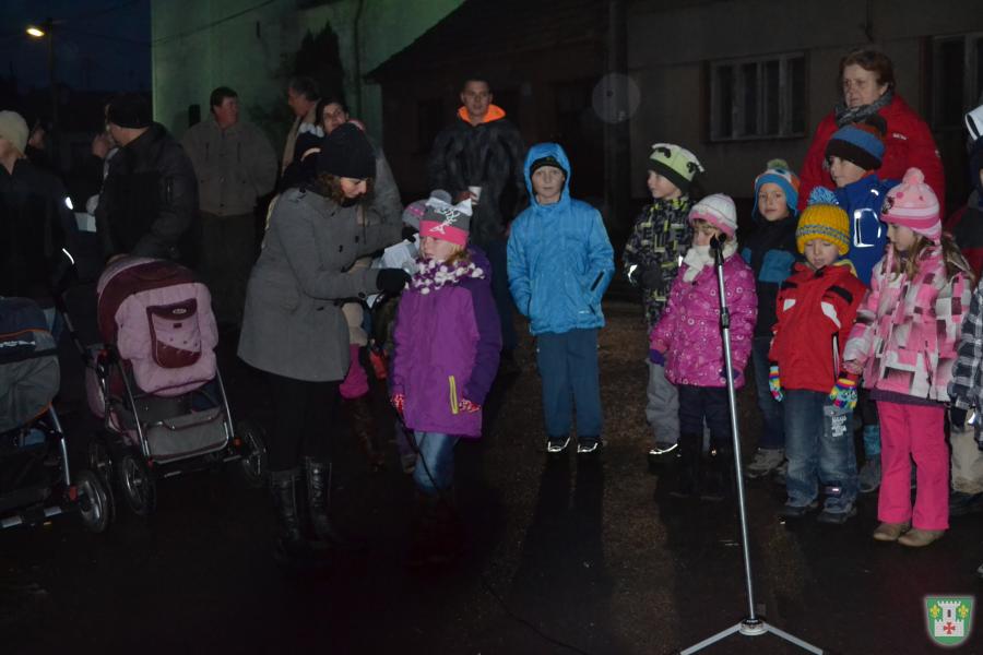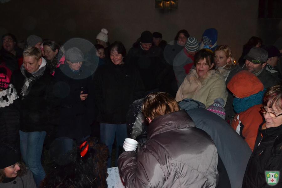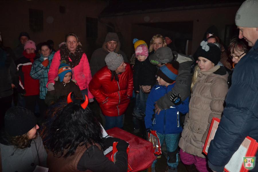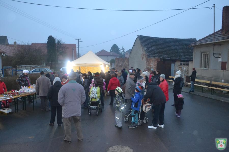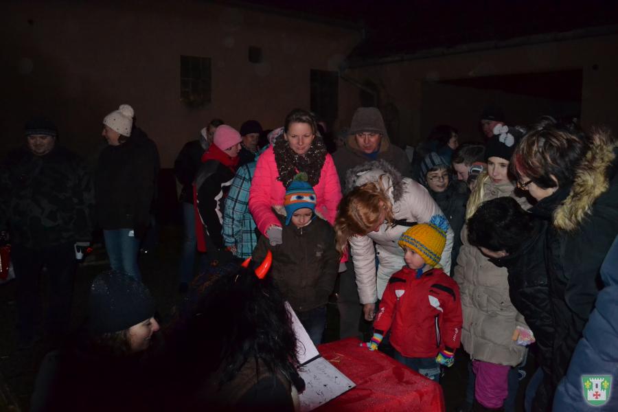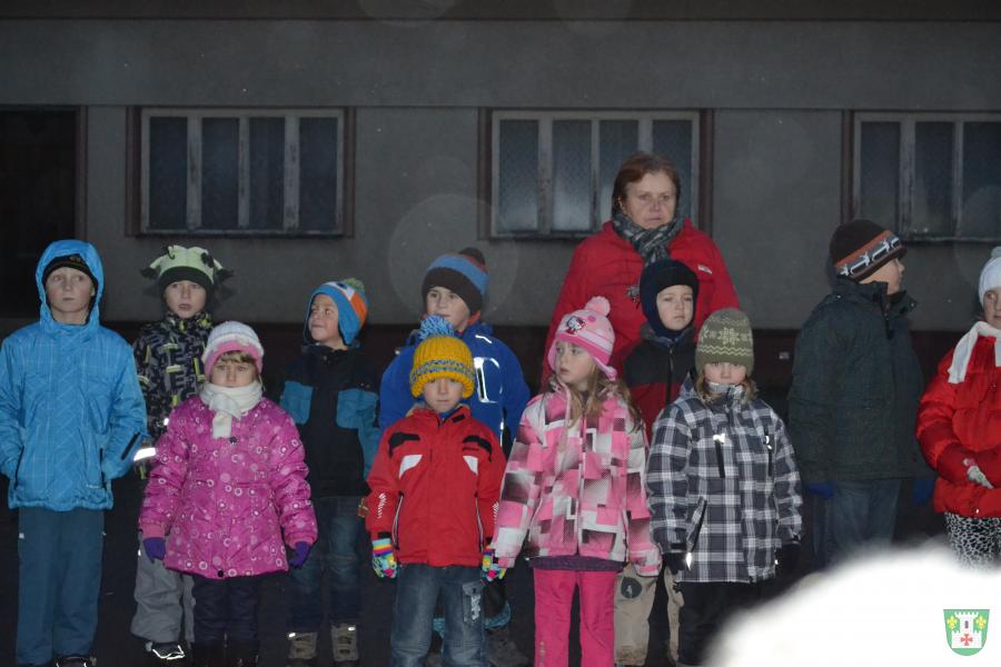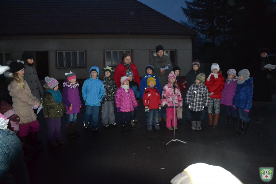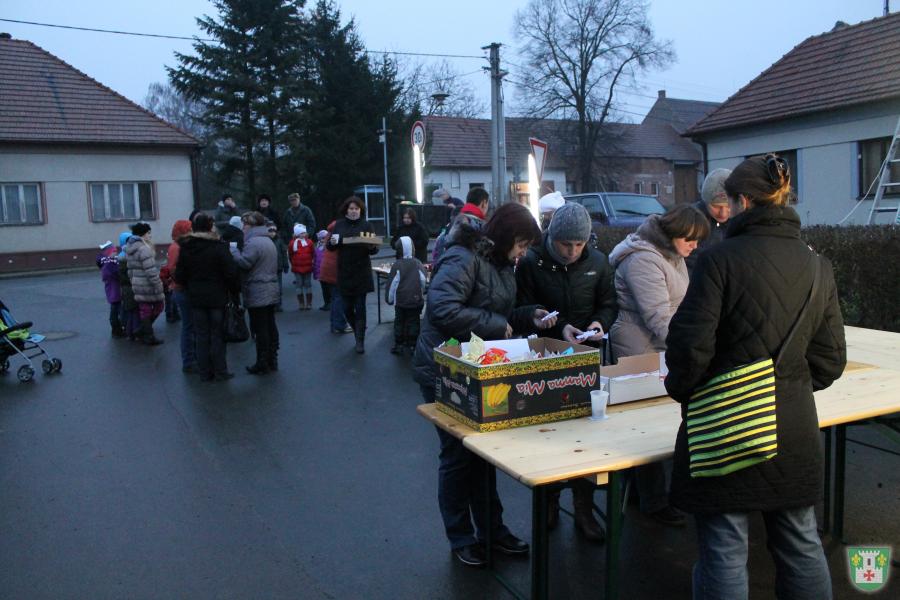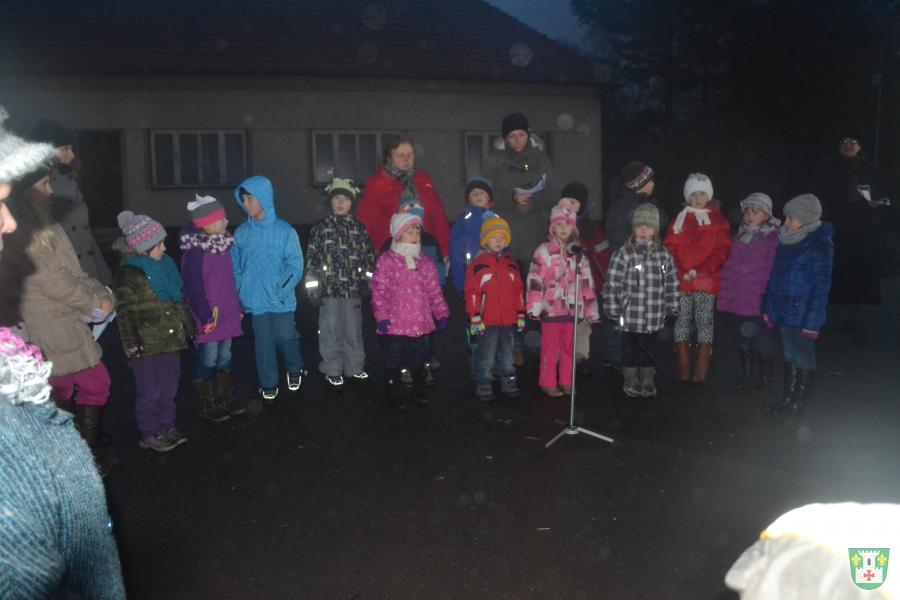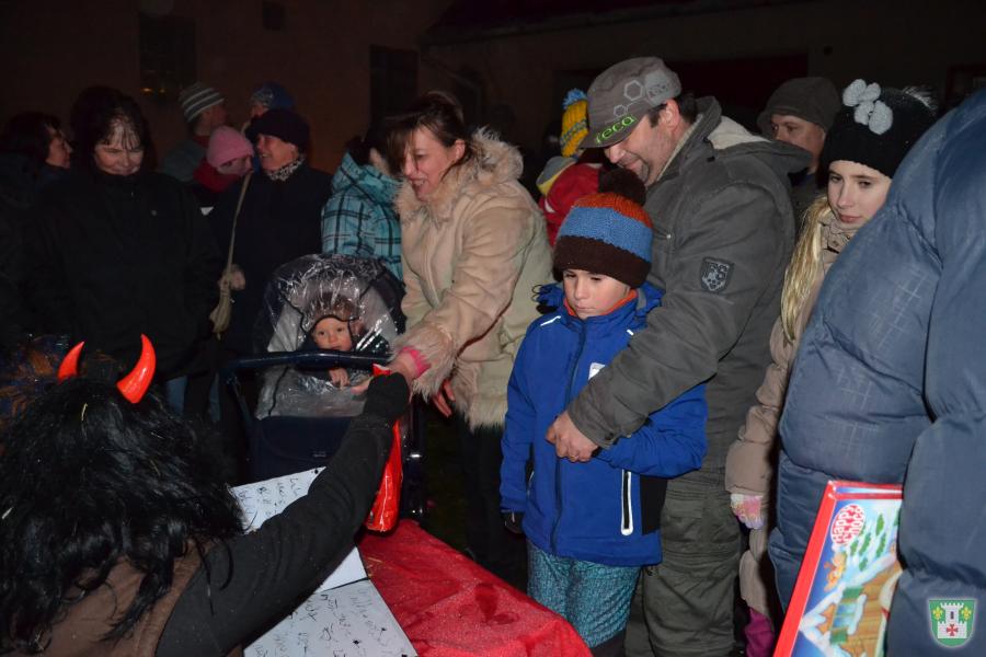 V neděli 30.11. jsme se sešli u požární nádrže u příležitosti slavnostního rozsvěcování vánočního osvětlení. Děti z mateřské školy i větší školáci nám přednesli básničky a zazpívali. Poslechli jsme si i písničky zahrané na flétnu a krásný zpěv zpěvaček sboru p. Jarolíma. Paní starostka nám popřála klidný adventní čas, příjemně prožité vánoční svátky a dobrou náladu a optimismus do nového roku. Po rozsvěcení vánočního osvětlení,se k překvapení všech, mezi námi objevil čert s důležitým psaním. Pozval všechny děti na návštěvu do pekla, některé se bály, ale zvědavost byla větší.Ukápla i nějaká slzička, všechny děti pak byly za odvahu odměněny. Čertům moc děkujeme, že se na nás přišli podívat. I když nám počasí moc nepřálo, dali jsme si svařáček a vánoční punč na zahřátí, popovídali si a s dobrou náladou jsme se vraceli domů.