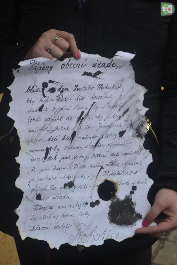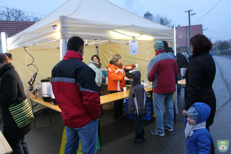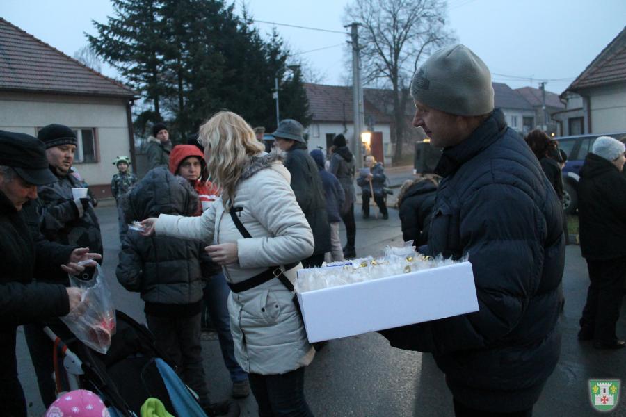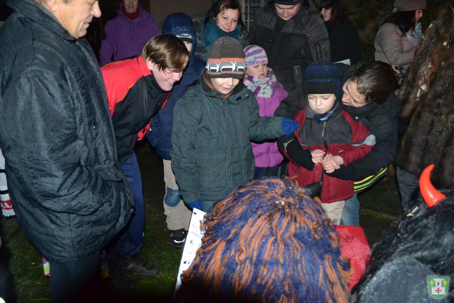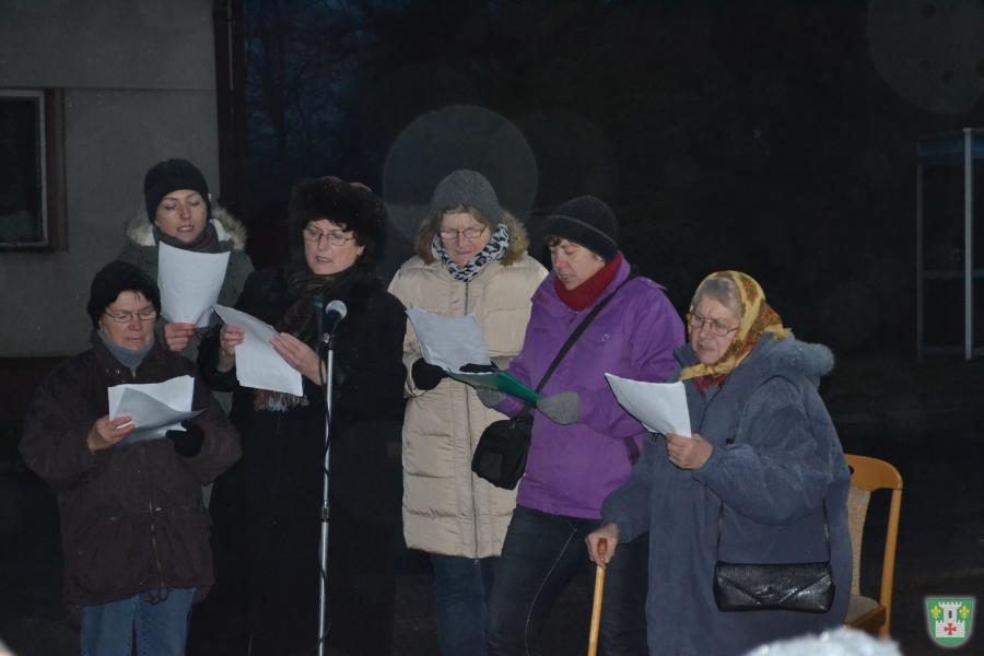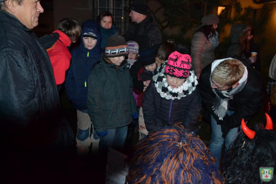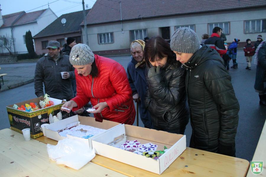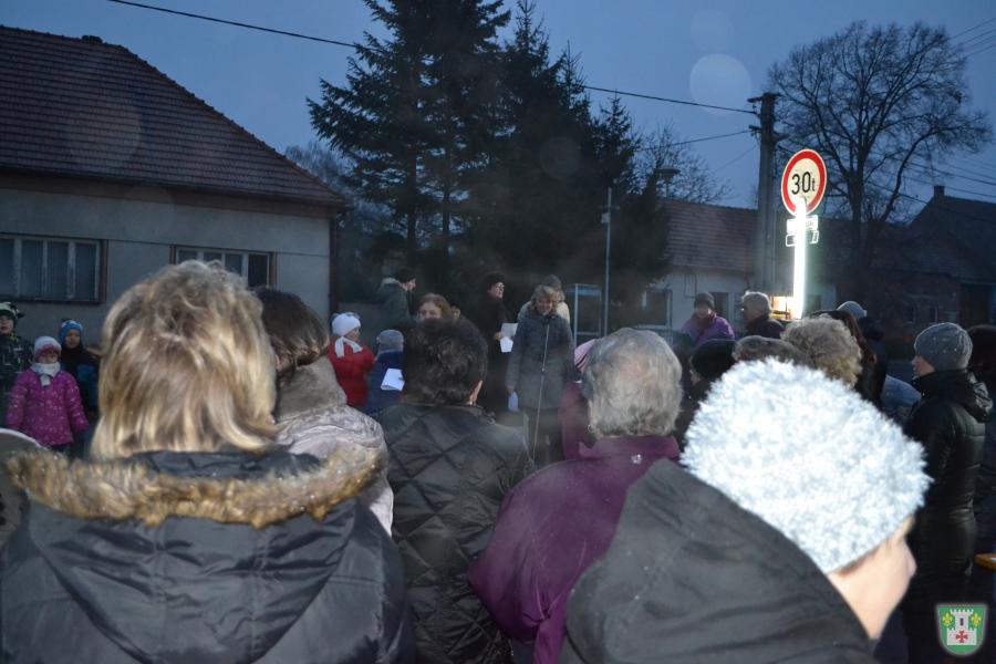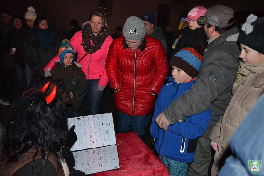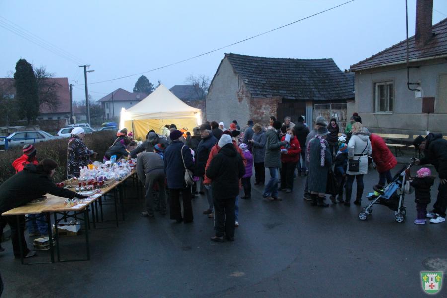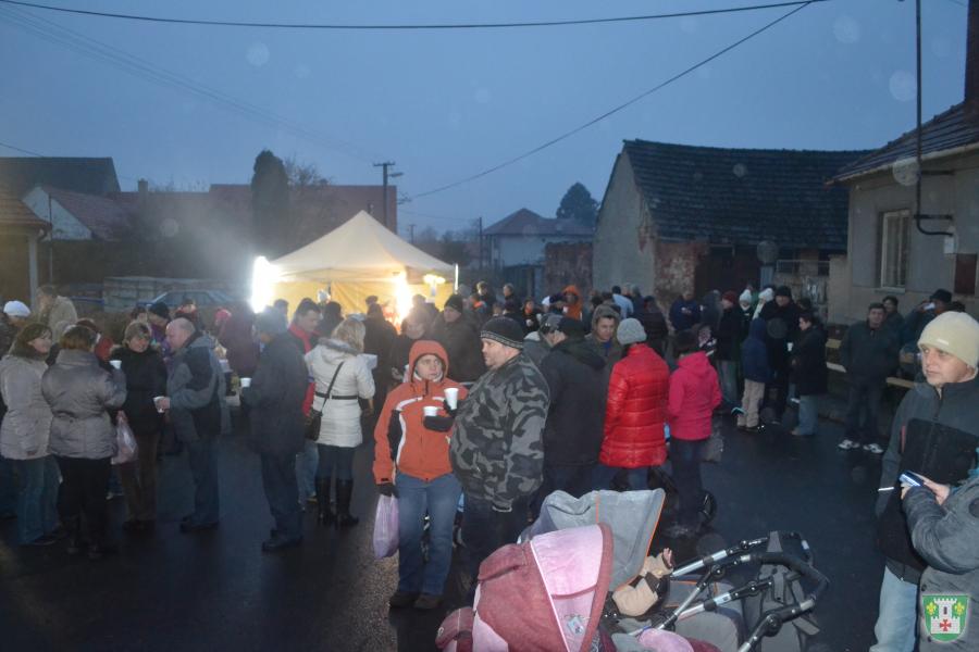 V neděli 30.11. jsme se sešli u požární nádrže u příležitosti slavnostního rozsvěcování vánočního osvětlení. Děti z mateřské školy i větší školáci nám přednesli básničky a zazpívali. Poslechli jsme si i písničky zahrané na flétnu a krásný zpěv zpěvaček sboru p. Jarolíma. Paní starostka nám popřála klidný adventní čas, příjemně prožité vánoční svátky a dobrou náladu a optimismus do nového roku. Po rozsvěcení vánočního osvětlení,se k překvapení všech, mezi námi objevil čert s důležitým psaním. Pozval všechny děti na návštěvu do pekla, některé se bály, ale zvědavost byla větší.Ukápla i nějaká slzička, všechny děti pak byly za odvahu odměněny. Čertům moc děkujeme, že se na nás přišli podívat. I když nám počasí moc nepřálo, dali jsme si svařáček a vánoční punč na zahřátí, popovídali si a s dobrou náladou jsme se vraceli domů.