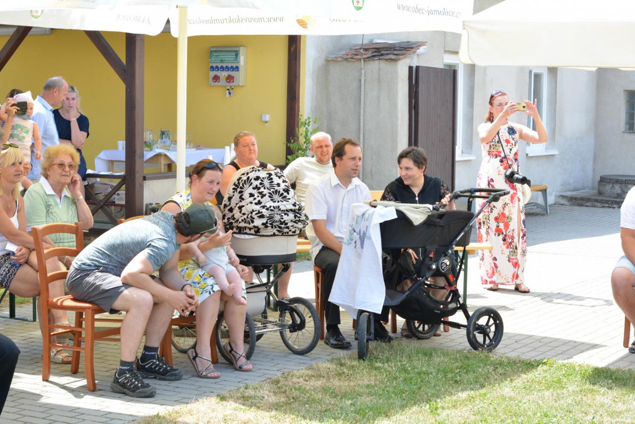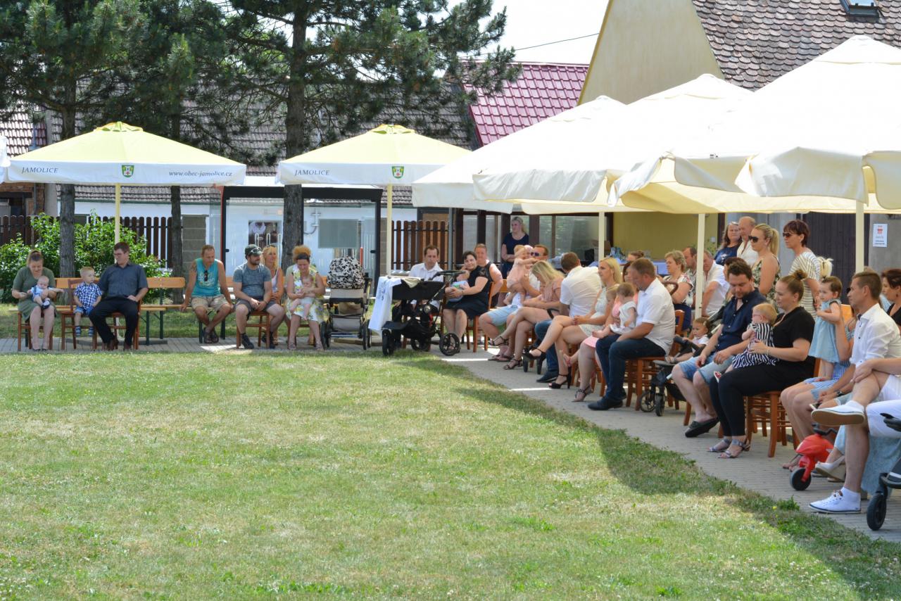 V neděli 20.6.2021 se v areálu za školou konalo Vítání občánků. Vítali jsme 11 dětí - 6 holčiček a 5 chlapečků, protože v loňském roce se nepodařilo akci uskutečnit. Jamolické děti vystoupily s krátkým programem a zahájily slavnostní vítání nových občánků. Všechny vítané děti dostaly dárek a poukázky na nákup potřebných věcí. Přestože bylo opravdu horné letní počasí, bylo to velice příjemné setkání.