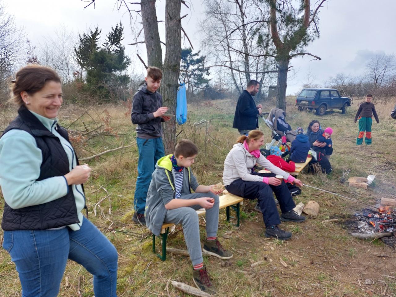 Dneska jsme vysazovali sazenice smrku a borovice na obecním pozemku. Dětem i dospělým šla práce pěkně od ruky a zasázeli jsme asi 500 ks sazenic. Při opékání špekáčků jsme se od p.Smejkala, který se o obecní lesy stará, dozvěděli mnoho zajímavého o výsadbě lesa i o těžbě dřeva. Za pár roků, až se na toto místo zajdou ti, co dneska byli sázet podívat, budou rádi na tuto akci vzpomínat a budou třeba i pyšní, až uvidí, jak stromy vyrostly. Všem tímto děkujeme.