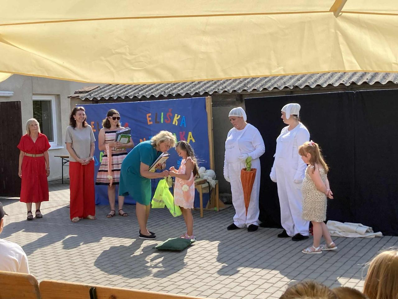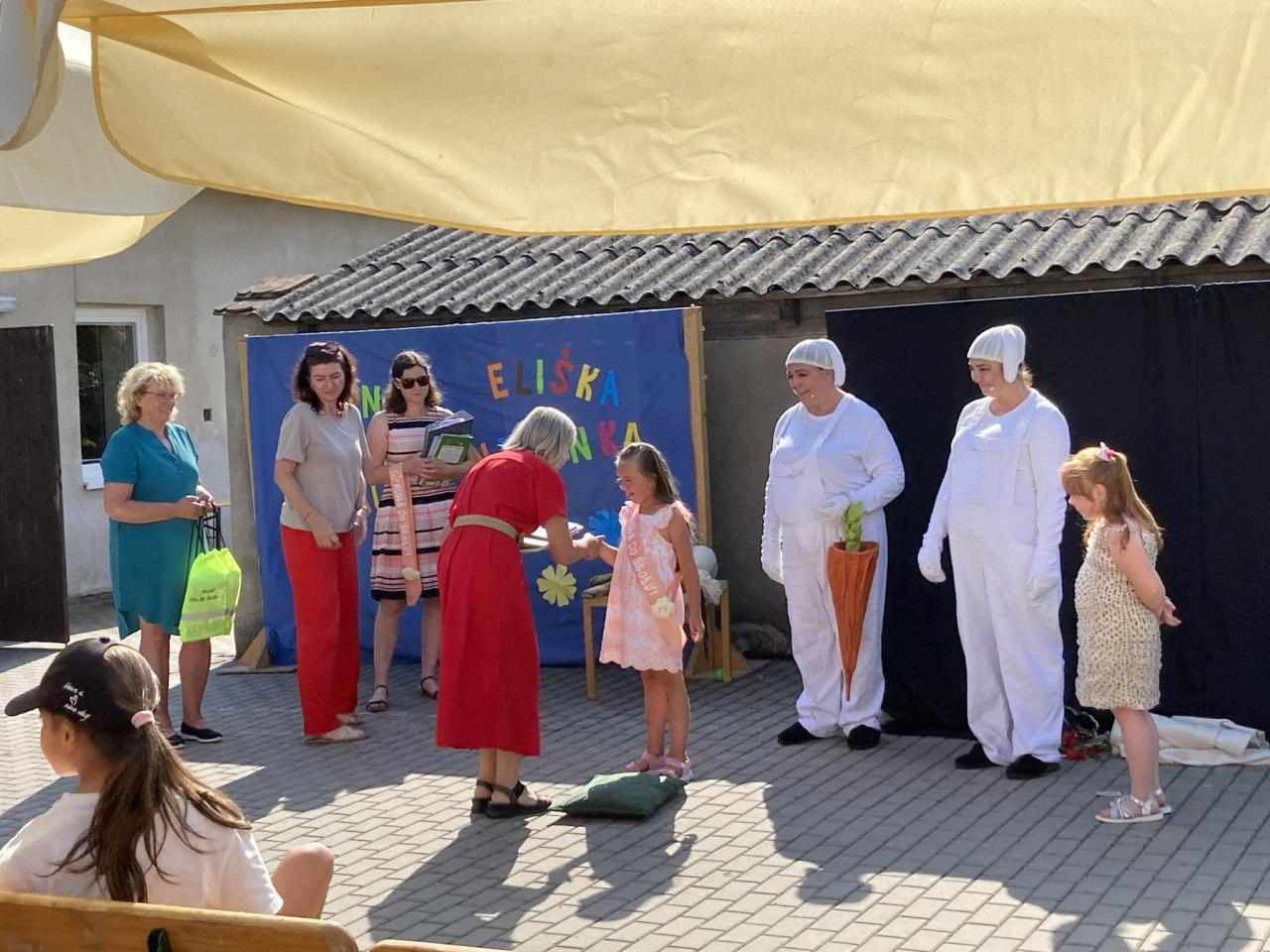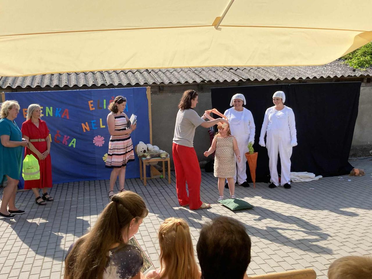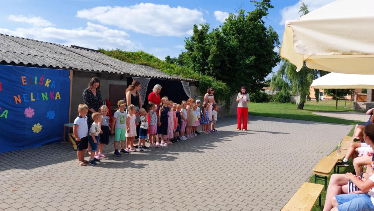 Letos se s mateřskou školou loučila čtyři děvčátka, která budou po prázdninách navštěvovat školu v Moravském Krumlově. Po slavnostním pasování bylo připraveno veselé představení pro děti a následovalo výborné občerstvení.